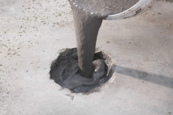НАНЕСЕНИЕ СОСТАВА. Приготовленный раствор необходимо заливать непрерывно без вибрирования. Заливку производят с одной стороны, чтобы предотвратить защемление воздуха. Необходимо удостовериться, что раствор полностью заполнил пространство между опалубкой и старой конструкцией. Для этого можно использовать полоску из мягкой стали. При необходимости создания слоя толщиной более 50 мм следует добавлять промытый крупный заполнитель в количестве до 30% от массы сухой смеси.